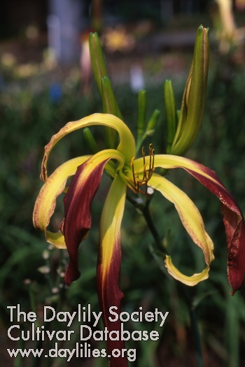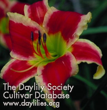 | Description : orange red blend above green throat | |