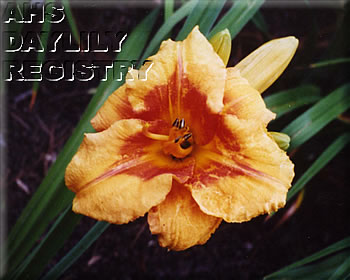 | Description : peach with a very large eye and a thin red edge, very long blooming | |