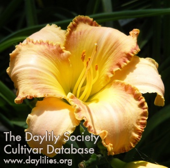 | Description : soft pink raspberry with raspberry gold halo and edge above lime throat | |